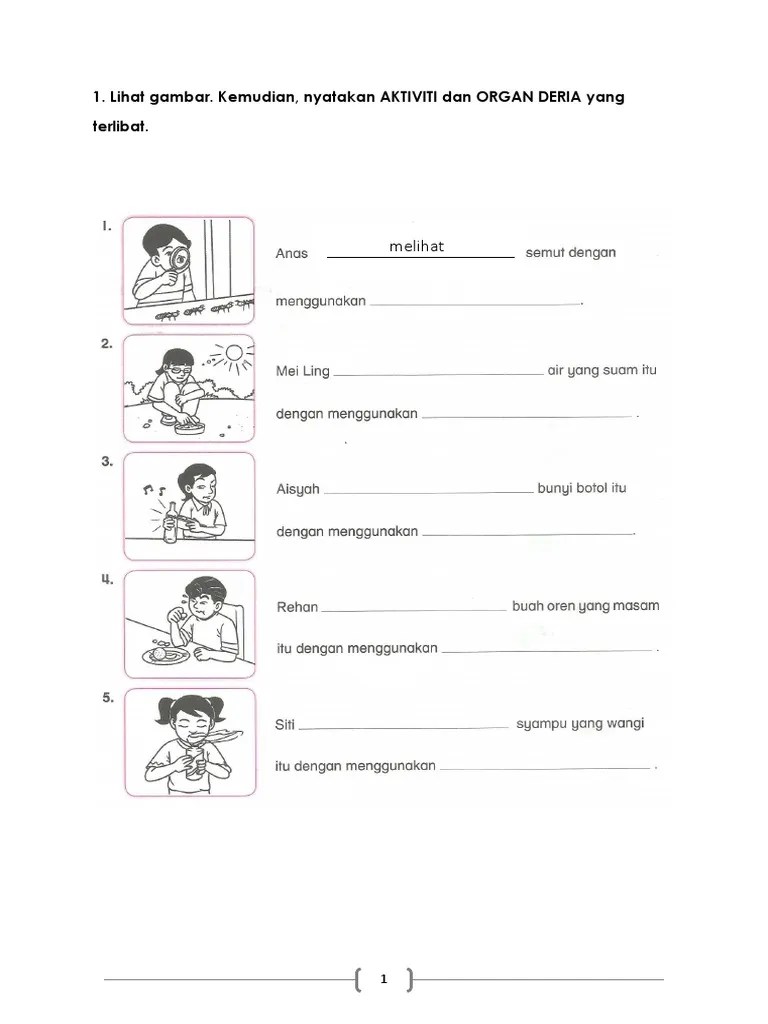 Ciri ciri pemerhatian organ deria yang digunakan 1. _____ ialah kemahiran menggunakan pemerhatian untuk mengasingkan dan mengumpulkan objek. Dalam buku ini memuat berbagai hal yang . Soalan apakah deria yang membantu kamu mengenal pasti objek dengan betul dalam aktiviti ini?